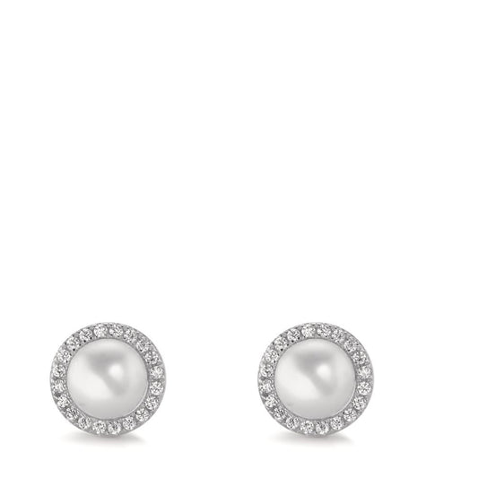 Clous d'oreilles Argent Zircone Rhodié perle d'eau douce blanc, 2 Perles Ø9 mm