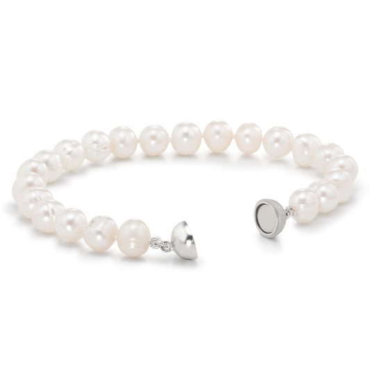 Bracelet Tissu, Acier inoxydable perle de culture blanc, 7 mm 16-21 cm Ø7 mm