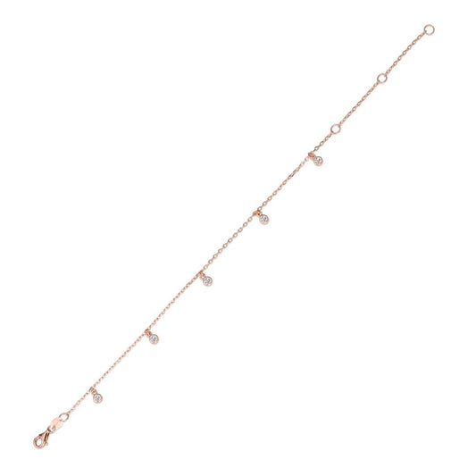 Bracelet Argent Zircone 5 Pierres rosé Plaqué or 16-19 cm