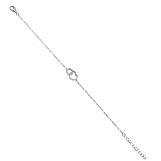 Bracelet Argent Zircone 14 Pierres Rhodié Coeur 16.5-19.5 cm