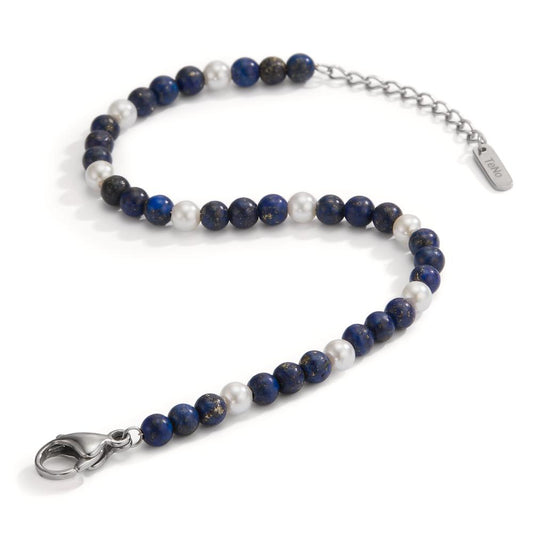 Bracelet Acier inoxydable Lapis-lazuli perle de culture blanc, 9 Perles, 4 mm 17.5-19.5 cm Ø4 mm