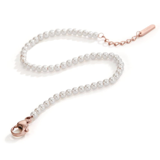 Bracelet Acier inoxydable rosé PVD perle de culture blanc, 55 Perles, 3 mm 17.5-19.5 cm Ø3 mm