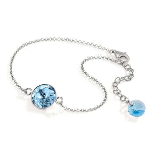 Bracelet Argent Zircone aqua, 2 Pierres Rhodié 17.5-20.5 cm Ø11 mm