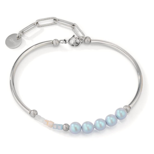 Bracelet Acier inoxydable Zircone 6 Pierres [shining Pearls] bleu clair, 5 Perles, 6 mm 18-22 cm