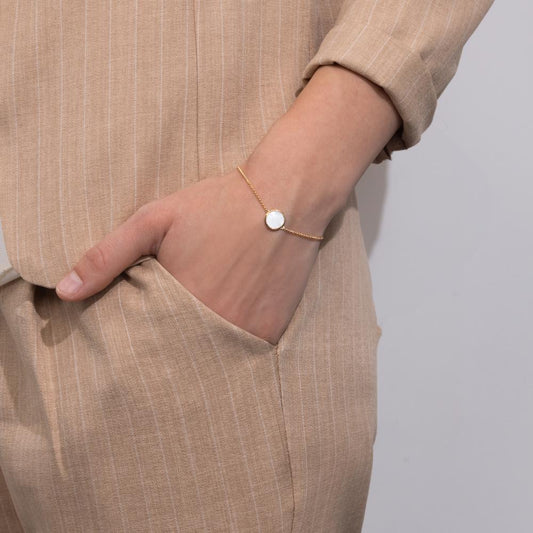 Bracelet Argent jaune Plaqué or nacre 17-19 cm