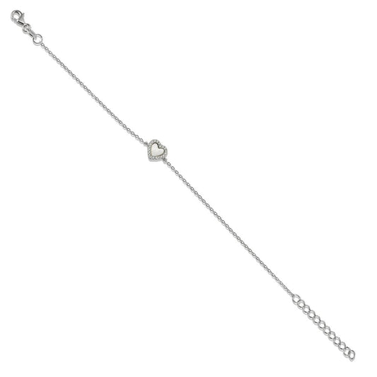 Bracelet Argent Zircone Rhodié nacre blanc Coeur 15.5-18.5 cm Ø8 mm