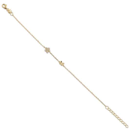Bracelet Argent Zircone 6 Pierres jaune Plaqué or Fleur 16-19 cm