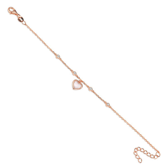 Bracelet Argent Zircone 4 Pierres rosé Plaqué or nacre blanc Coeur 16-19 cm