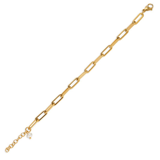 Bracelet Acier inoxydable jaune PVD perle d'eau douce blanc, 4.5 mm 18.5-22 cm