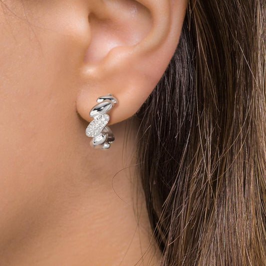 Créoles à charnières Argent Zircone 24 Pierres Rhodié