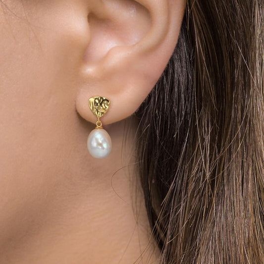 Pendant d'oreilles Argent jaune Plaqué or perle d'eau douce, 2 Perles 7.5-8 mm