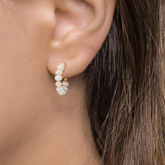 Créoles Argent jaune Plaqué or perle d'eau douce, 20 Perles, 4 mm