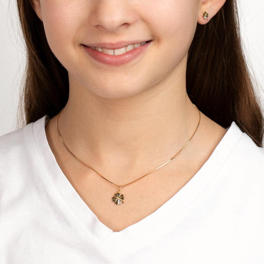 Clous d'oreilles Or jaune 9K Zircone 2 Pierres Feuille de Trèfle Ø6.5 mm