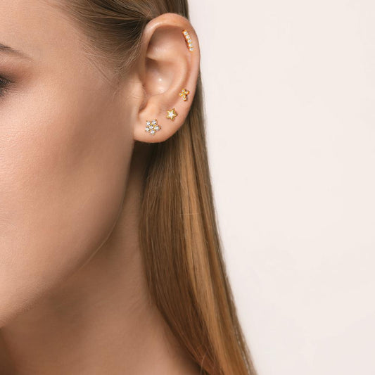 Clous d'oreilles Argent Zircone 9 Pierres jaune Plaqué or