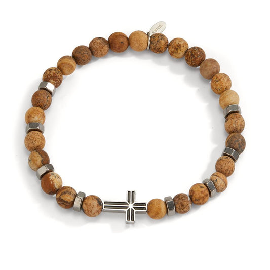 Bracelet Acier inoxydable Jaspe, Lava noir PVD 19 cm Ø6.5 mm