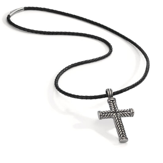 Chaînette avec pendentif Acier inoxydable, Cuir occulté Croix 50 cm