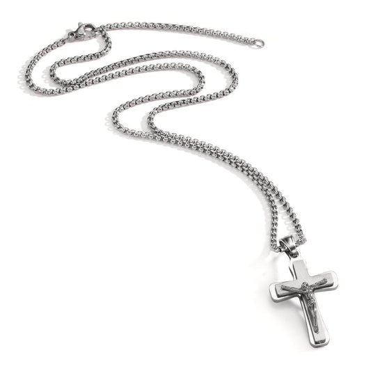 Collier Acier inoxydable, Carbone Zircone noir Croix 45-50 cm