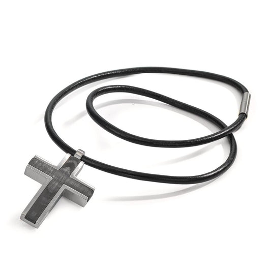 Collier Acier inoxydable, Cuir, Carbone Croix 50 cm Ø3 mm
