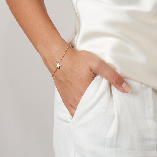 Bracelet Argent jaune Plaqué or nacre Étoile 17-19 cm