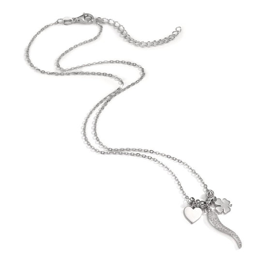 Collier Argent Zircone Rhodié Porte-bonheur 40-45 cm
