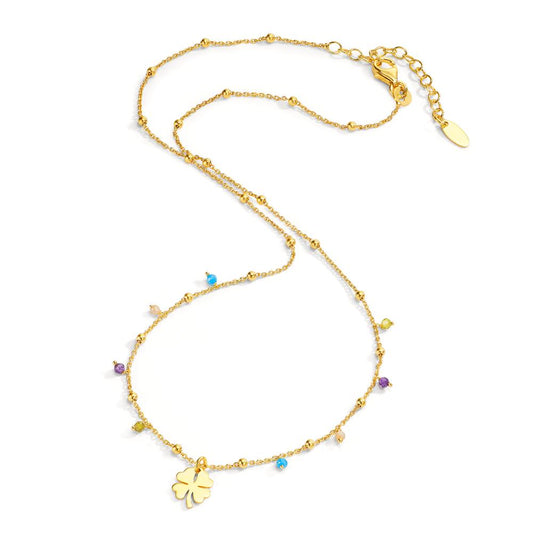 Collier Argent Cristal 8 Pierres jaune Plaqué or Feuille de Trèfle 40-44 cm