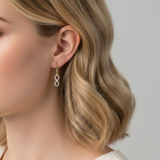 Pendant d'oreilles Or jaune 9K Zircone Infini