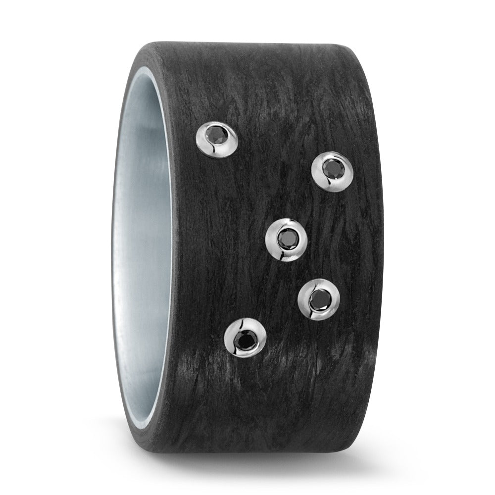 Bague Acier inoxydable, Carbone, Or blanc 18K