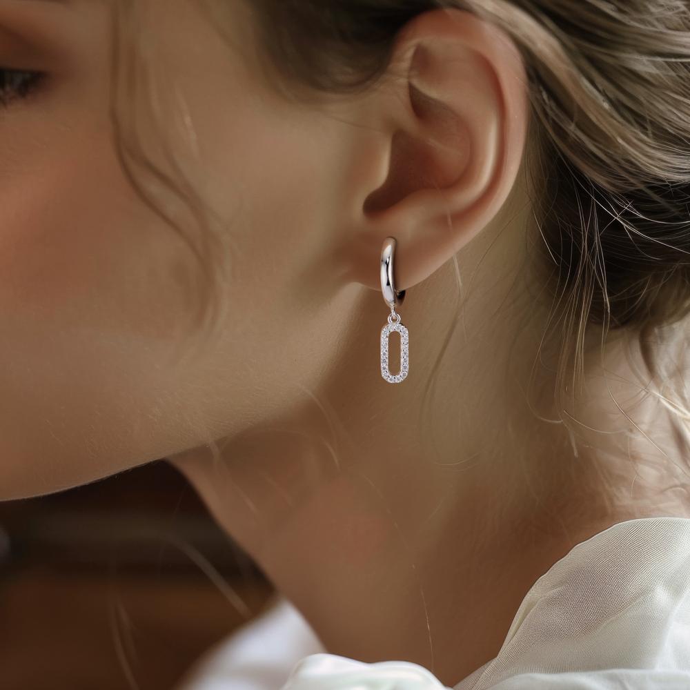 Boucles d'oreilles créoles pour femme en argent avec pendentif ovale orné de zircones étincelantes. Un design élégant et moderne qui illumine votre visage. Faciles à porter grâce à leur fermeture à clapet sécurisée, parfaites pour toutes les occasions.
